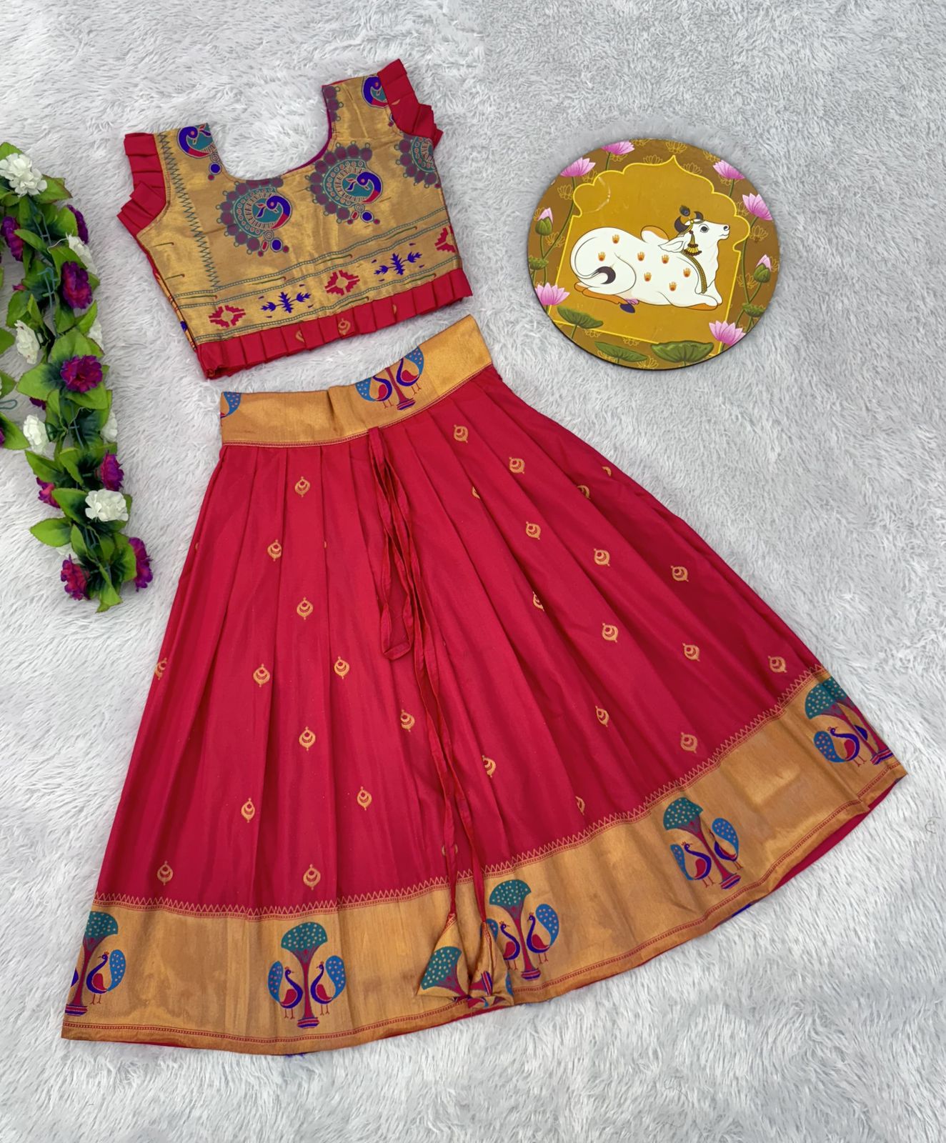 Lehenga : Fully stitched with Premium Paithani design zari weaving work with full Inner