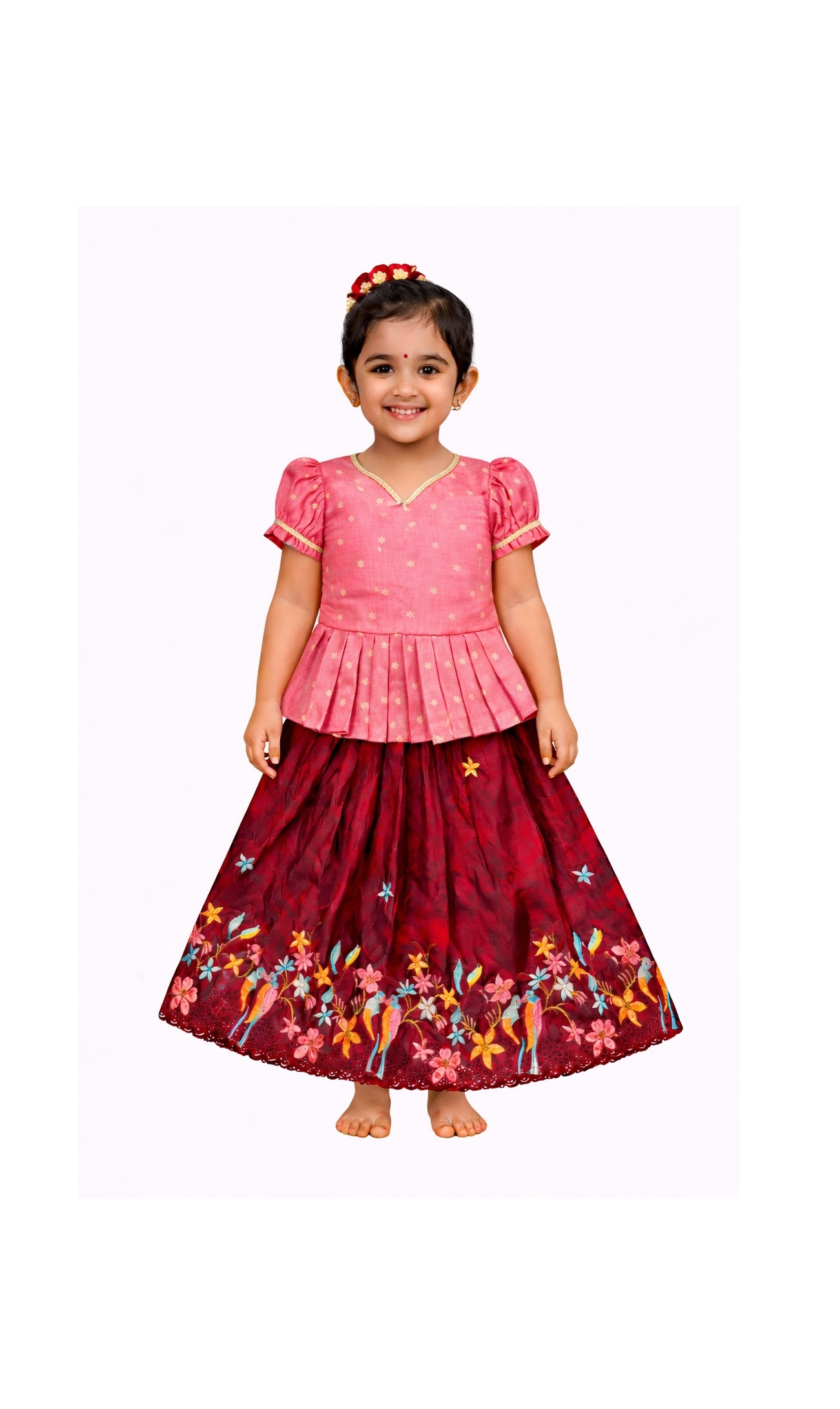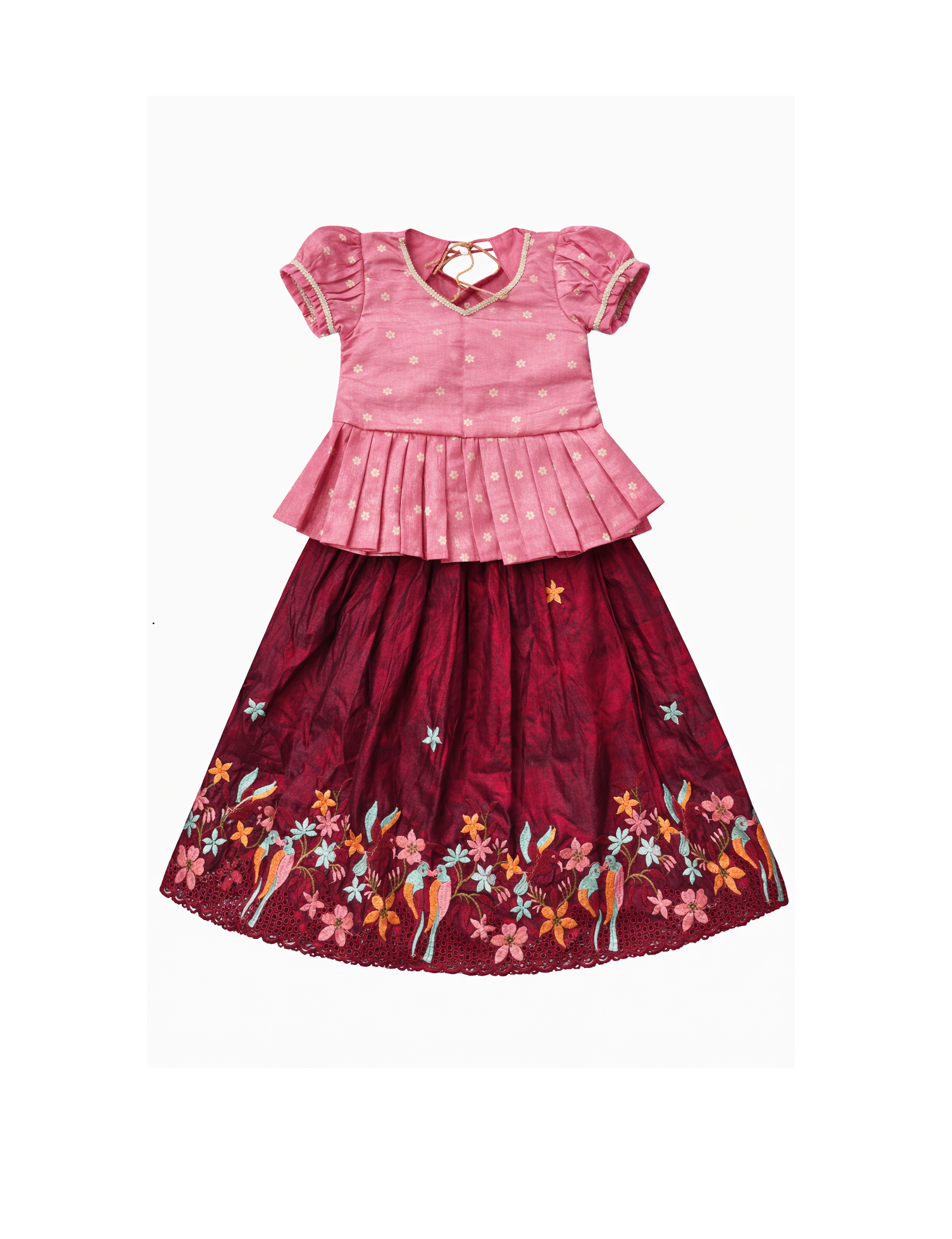 Rose Pink & Deep Maroon Graceful Embroidery Lehenga Choli