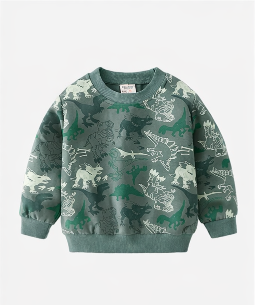 Kids Dinosaur Outfit Set – Army Green Cotton Toddler Tracksuit
